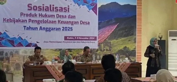 Metro7online.com.KUDUS– Dinas Pemberdayaan Masyarakat dan Desa (PMD) Kabupaten Kudus menyelenggarakan sosialisasi terkait produk hukum desa serta kebijakan pengelolaan keuangan desa untuk persiapan tahun anggaran 2025.