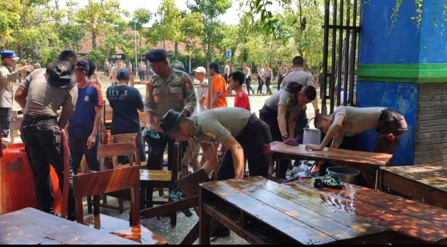 “Bakti sosial pembersihan tempat pasca banjir oleh Taruna Akpol dilakukan di Balai Desa Wonorejo, SD N 1 dan SD N 2 Wonorejo guna mempercepat proses belajar mengajar pasca banjir,” ujar Irjen Pol. Krisno, Selasa (2/4/2024).