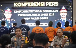 “Penegakan terhadap Minuman Keras (Miras), Polres Demak berhasil mengamankan 1096 botol terdiri dari 521 botol Miras pabrikan dan 575 botol Miras tradisional, melalui 42 kegiatan razia,” kata AKBP Ari saat konferensi pers di Polres Demak, pada 21/02/2025.