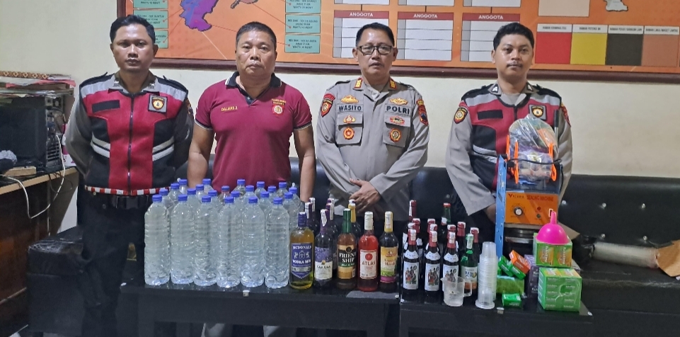 Lebih lanjut, AKP Wasito merinci hasil razia kali ini. Pihaknya mengamankan sebanyak 45 botol minuman keras, yang terdiri dari miras pabrikan dan tradisional. Selain itu, petugas juga menyita enam puluh pack minuman berenergi yang diduga kuat digunakan sebagai bahan dasar “Es Moni”, serta satu alat pres plastik yang biasa digunakan untuk pengemasan.