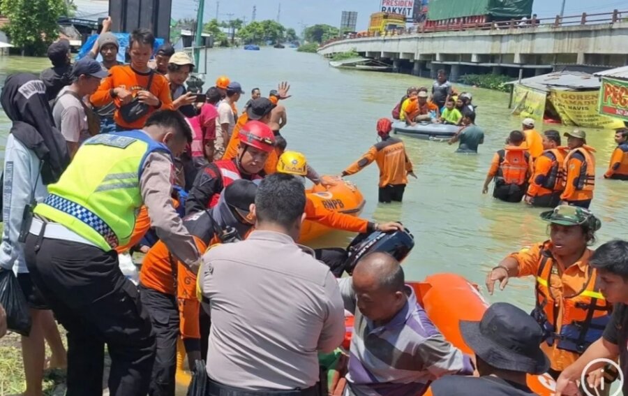 Metro7online.com DEMAK– Personel Polres bersama TNI, BPBD, instansi terkait serta relawan di Kudus Jawa Tengah bersama-sama membantu proses evakuasi korban banjir di Kecamatan Karanganyar Kabupaten Demak pada hari Jumat.
